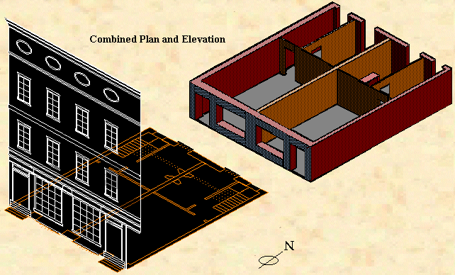 | The Bolivar House made a handsome addition to the facade of the Chestnut Street Theatre, balancing the Shakespeare Building on the east. Little is known of the building. Contemporary accounts suggest that it's lower floor housed two shops, while the upper floors were dwellings, an arrangement quite common in Philadelphia of the early 19th century. |