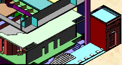 Once past the control wall, those bound for boxes on the main floor entered the rear of the theatre via short flights of steps immediately before them as the entered the lobby, or passed down one of the passages to the right or left to seats nearer the front of the house. Patrons bound for the upper level of seating turned left or right to ascended a curving stairway to the second floor lobby. |