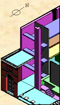 Presumably the stairs in the east wing (pavilion) resembled those in the west wing, seen here in dark blue. |